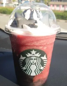 お休みの日にスタバのハロウィンメニューのフラペチーノを飲みに行きました。黒猫がモチーフでトッピングの猫耳のチョコが可愛く、味もすごくおいしかったです!